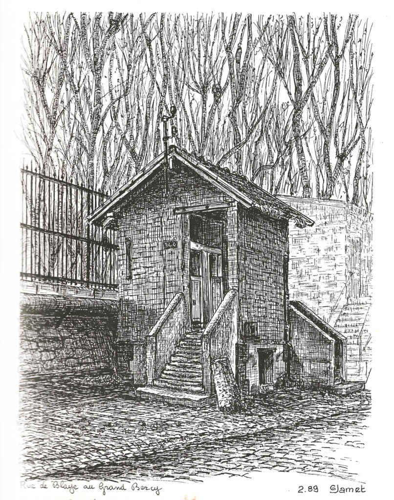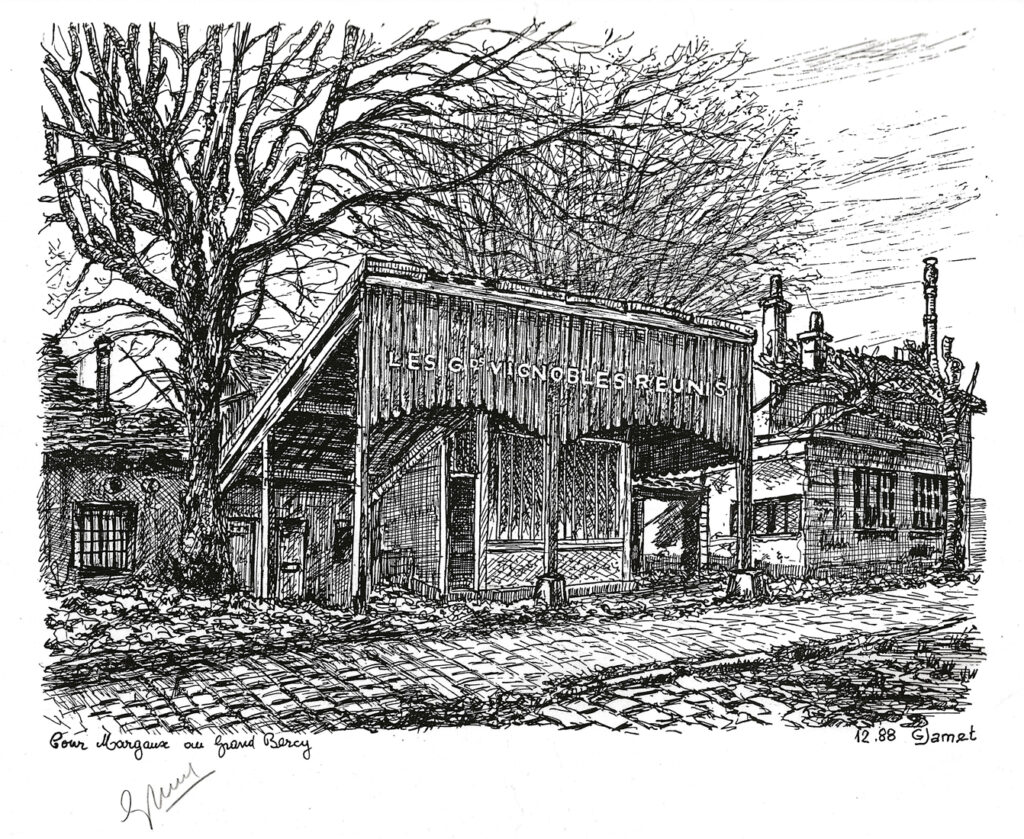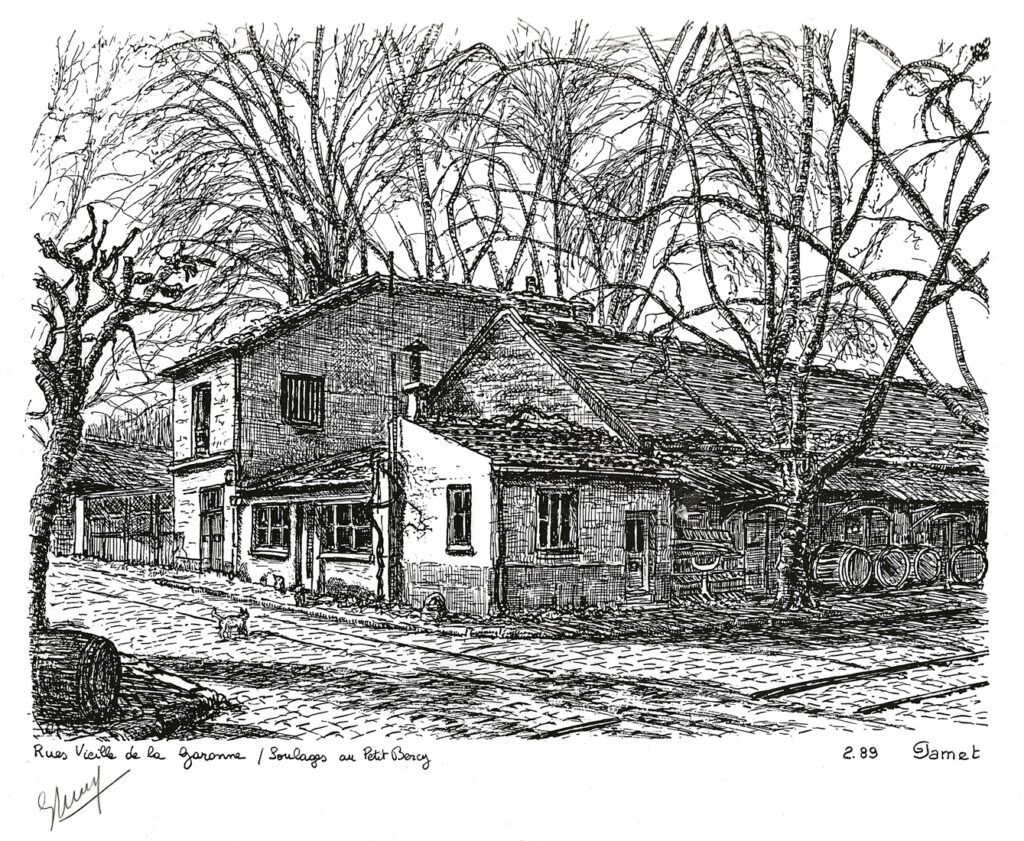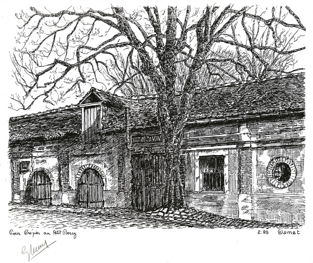Il a fait plusieurs dessins de Bercy, à la plume (ci-dessous), dont la cour Louis Proust et les vestiges du Petit-Château, dans le chai de François Fanton.