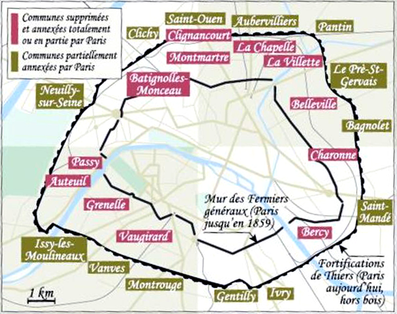 Le décret du 16 juin 1859 qui réunissait à la Ville de Paris 24 petites communes situées dans sa périphérie, suscita bien des protestations. Dès 1855 le Conseil Municipal de Bercy s’était inquiété du projet. Les Conseillers Municipaux Gallois, Abel Laurent, Chabrier, Louis Proust, protestèrent avec véhémence . Ce fut en vain : Le décret d’annexion fut promulgué.