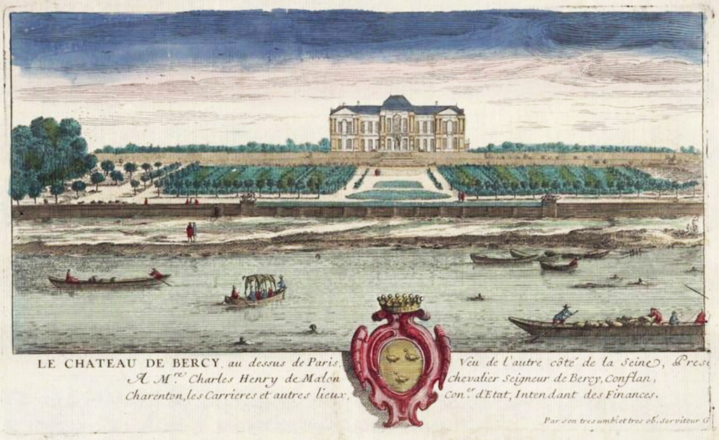 Le 25 septembre 1715, Louis XV, âgé de cinq ans, est conduit en promenade au château de Bercy. « M. le duc d’Orléans conduisit le roi à Bercy proche de Charenton où M. de Bercy, intendant des Finances, gendre de M. Desmaretz, a fait bâtir une maison superbe et d’une agréable situation. »