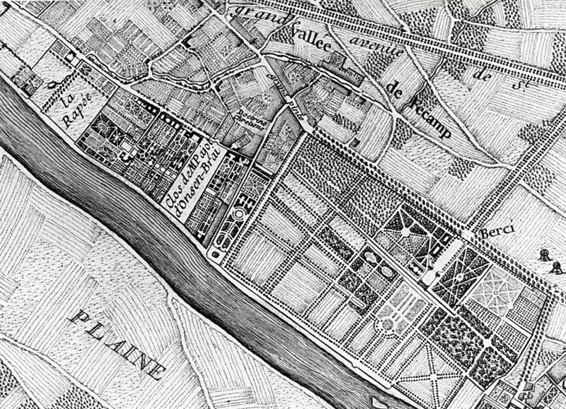 Aux XVII et au XVIIIe siècles, il était de mode, pour la noblesse et la haute bourgeoisie, de posséder en bordure de Seine, à proximité du Marais, « sa campagne à Paris ». Treize propriétés se succédaient entre la barrière des Fermiers Généraux (actuel boulevard de Bercy) et le parc du château de Bercy. Édifiées, pour la plupart, en bordure de la rue de Bercy, afin d’éviter les fréquents débordements du fleuve, ces demeures étaient mises en valeur par des jardins qui descendaient en pente douce jusqu’à la Seine. Des terrasses et des pavillons de vue dominaient le chemin de halage, « le chemin le long de la rivière » qui conduisait aux carrières de Conflans.