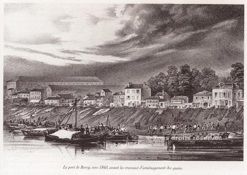 Lorsque, le 10 février 1811, l’Empereur Napoléon, accompagné de Duroc, Grand Maréchal du Palais et duc de Frioul, et du comte de Nicolaÿ, grand chambellan d’Empire, visita Bercy où il fut accueilli au nom de la municipalité par Mmrs Gallois et Courvoisier, il y avait longtemps que ces bords de Seine n’offraient plus l’aspect champêtre du chemin le long de la rivière. En 1820, selon un rapport du maire, Louis Gallois, 3 000 bateaux par an déchargeaient leur cargaison dans le port. Les premières habitations laissèrent peu à peu la place à des maisons plus conséquentes, et même somptueuses, construites par des notabilités du commerce et du négoce de la commune. En 1847, la voie publique du quai fut pavée. Le nouveau pont Louis-Philippe, inauguré en 1832, donna au port une grande importance…